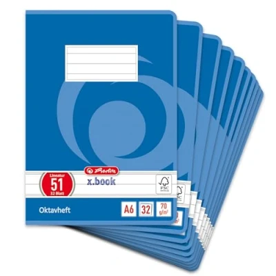 Herlitz Octave Notebook, A6, 60 Sheets, FSC Mix, Pack of 10 Blau, liniert