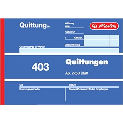 Herlitz Receipt Pad 403 A6 Landscape 2 x 50 Sheets