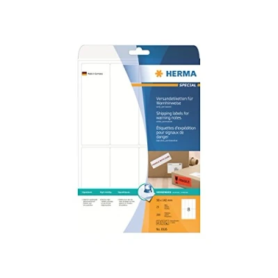 Labels for shipping and warning notes A4, 50 x 142 mm, White, permanent adhesion Ideal for customised shipping notices and reliable carriage to the recipient Firm adhesion to all packaging materials: envelopes, parcels, shipping tubes, film, PE and Tyvek Suitable for inkjet printers, laser printers and copiers, perfect printing results in black-and-white or colour Design your labels professionally and for free with our Online software and practical templates. Visit herma /free-software