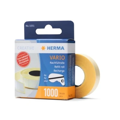 Dispenses 1000 double-sided self-adhesive paper tabs in a series or individually For quickly and reliably sticking down photos, receipts, documents, etc. Useful in the office and at home as well as for crafts Can be refilled with a matching refill roll from Herma Open the dispenser, insert the roll and close - done.