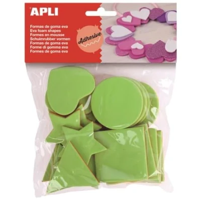 Geometric EVA shapes in multilayer size 50 x 50 mm; each bag contains 25 shapes Each geometric shape is composed of three layers of EVA rubber, each of a different colour: red, yellow and green These shapes are ideal for younger children due to their thickness and easy handling Perfect for all types of crafts