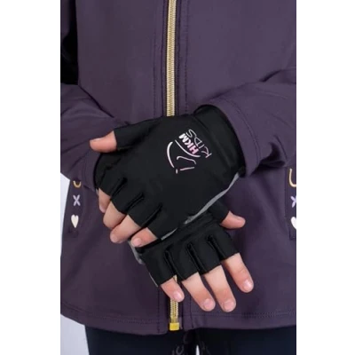 Silicone print Reinforced faux suede palm Soft padding Stretch insert