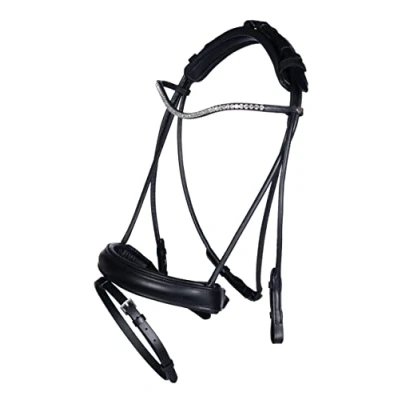 Luxurious round sewn bridle Strong leather Shared headpiece, noseband and cheek straps are adjustable behind the ears Round sewn browband Blind fasteners