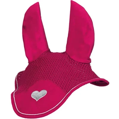Heart embroidery The veil is crocheted with breathable stitches The ears are made of an extra-soft, slightly shiny fabric Protects the horse from flies and other insects