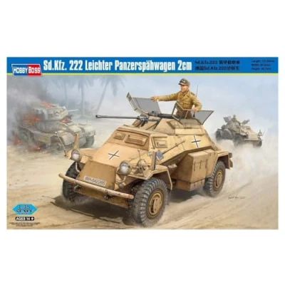 Easy assembly authentic kit. Requires construction. Sd.Kfz.222 Leichter Panzerspahwagen 2cm Photo-etched fret included Two-directional slide moulded lower hull, Manufacturer: Hobbyboss