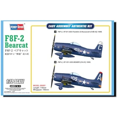 Hobbyboss 1:72 - F8F-2 Bearcat Detailed scale model kit This is not a toy For ages 14 and over, Manufacturer: Hobbyboss