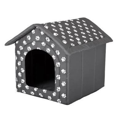 Hobbydog Dog House, Grey with Paws, M