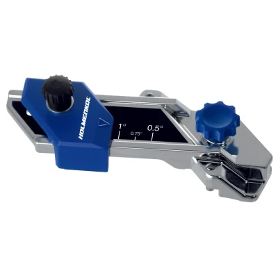 The Holmenkol Base Edge File Guide 0.5°~1.5° is a tool used for ski and snowboard tuning. It is a small, handheld device that is designed to help the user maintain the correct angle when filing the base edge of their equipment. The tool has an adjustable angle guide that ranges from 0.5° to 1.5°, which allows for precise tuning and customization based on the user's preferences and the snow conditions.