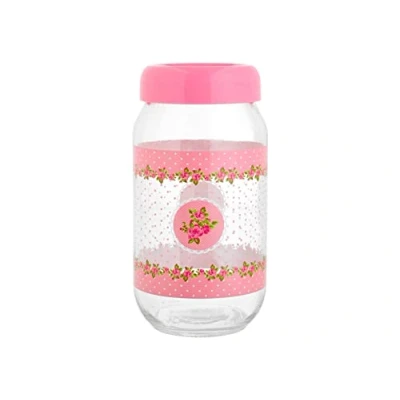 Home Decorative Jar with Plastic Cap, Glass, Pink, 1 lt, Medium
