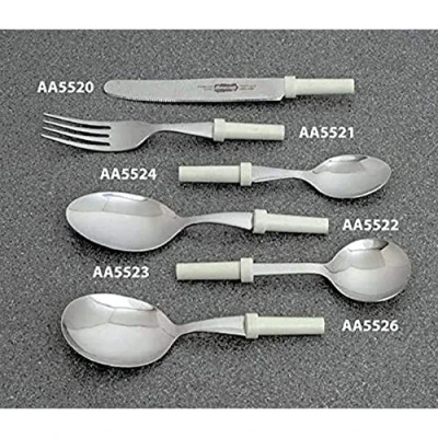 A standard knife mounted in a plastic spigot that can be attcahed to a chosen handle for convenience Ideal for individuals needing additional assistance when eating and for the elderly and disabled Knife fits tightly into the chosen handle, simply attach the plastic spigot onto the handle for a secure fit Blade can be angled as desired for easier use of the utensil for individuals who may need additional accommodations when eating Utensil is hygienic, non-corroding, and dishwasher safe
