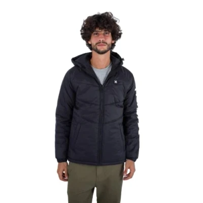 Light puffer jacket climate: Adirondack Fill: Thermalwall Polyfill Fabric A & B: 100% nylon Cire Chevron quilted Lining: 100% polyester taffeta Hood lining: 100% polyester taffeta Fabric: water resistant Fixed hood with adjustable toggle Center front exposed zipper Interior patch pocket