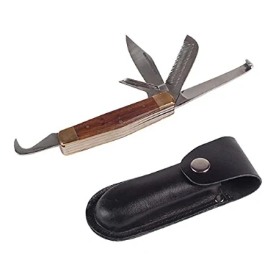 5 functions in one (hoof pick, hoof knife, mane warping comb and 2 utility knives) Comes with practical belt bag Easy to use