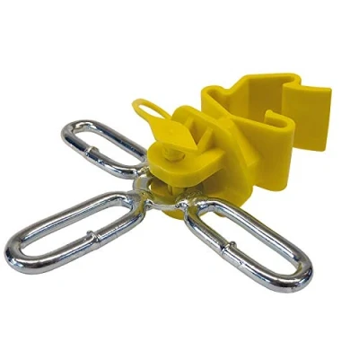Suitable for: suitable for the ECO green T-post of the horizont T-post series For which conductor material? Suitable for gate handles and for rope up to 6 mm Practical: gate insulator with hanging opening Quality: rounded eyelet, no damage to the rope Box contents: horizont 1 x guy insulator three-arm, yellow, for T-posts