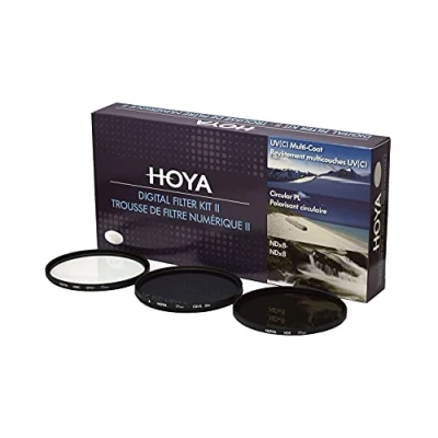 HOYA Filter Kit: 1x Pol-Cirkular Filter, 1x NDX8 Filter, 1x HMC UV(C) Filter, 1x Filter Case Each Hoya filter is the result of research, know-how and complete precision facilities backed by full quality control Hoya's single layer coating decreases light reflection off the surface from approx. 9% to an average of 4-5% Made of quality material