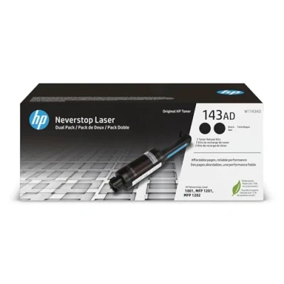 HP W1143AD 143AD Dual Pack Original Neverstop Laser Toner Reload Kit, Black, Multipack