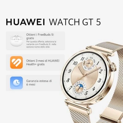 HUAWEI Watch GT 5 41 mm Smart Watch, Clean Lines, New Running and Cycling Experience, Health Monitoring, Up to 7 Days of Battery Life, iOS & Android, Gold