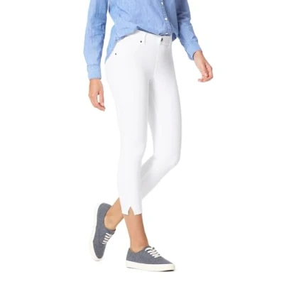 HUE Women's Essential Denim Capri with Ankle Slit Hosiery, White/Opulent Garden, L