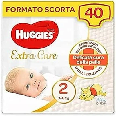 Huggies Extra Care is the line designed to protect baby's delicate skin. With super soft absorbent pads that absorb wet and liquid poop keeping skin dry and protected. With very breathable materials and a spacious back pocket that offers additional protection against spills. The channels distribute liquid evenly helping to keep skin dry, and the wet indicator helps tell when it's time to change the diaper. Skin compatibility dermatologically tested. Approved by the Dermatest Research Institute after a test on 35 subjects after 6 weeks of use. May 2020 This item contains a pack of 32 nappies
