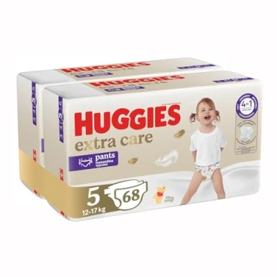 4 IN 1 SKIN CARE The diaper panties are soft, absorbent, breathable and hypoallergenic to protect baby's delicate skin Ultra soft, skin-friendly and breathable materials: the diaper panties are made of skin-friendly materials, which are breathable and provide your baby with a comfortable wearing experience Huggies PREMIUM QUALITY The nappy pants are free of fragrance, latex and elemental chlorine, providing the highest quality for your baby Easy to put on and take off: the diaper panties are easy to put on and can be easily closed and disposed of with the attached tape Contents half month box size 5: 2 x 34 nappy pants bulk pack