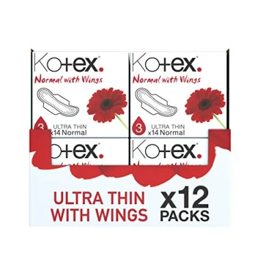 HUGGIES Kotex Ultra Thin Sanitary Towels with Wings, Normal Plus Absorbency 12 Packs x 14 Pads (168 Total)