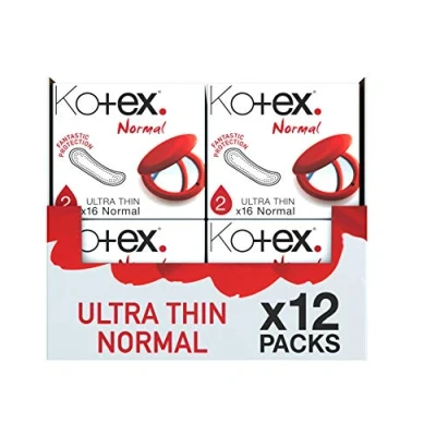 HUGGIES Kotex Ultra Thin Sanitary Towels without Wings, Normal Absorbency 12 Packs x 16 Pads (192 Total)