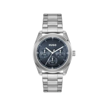 MULTIFUNCTION MOVEMENT – PRACTICAL AND POLISHED – The HUGO #BRIGHT SPORT men’s watch features sub-eyes for day, date, and 24-hour display, powered by a brushed three-hand layout. 42MM STAINLESS STEEL CASE – CLEAN AND CONTEMPORARY – A sleek case in stainless steel with black IP finish reflects the bold, urban identity of HUGO Watches. BLUE CIRCULAR BRUSHED DIAL – BOLD AND STRUCTURED – The deep blue dial features a circular brushed finish, molded indexes, and polished detailing for strong visual contrast. STAINLESS STEEL BRACELET – SHARP AND VERSATILE – A brushed stainless steel bracelet adds timeless style and complements the clean case design. 5 ATM WATER RESISTANT – BUILT FOR REAL LIFE – Splash- and rain-resistant. Not suitable for showering, swimming, or submersion.