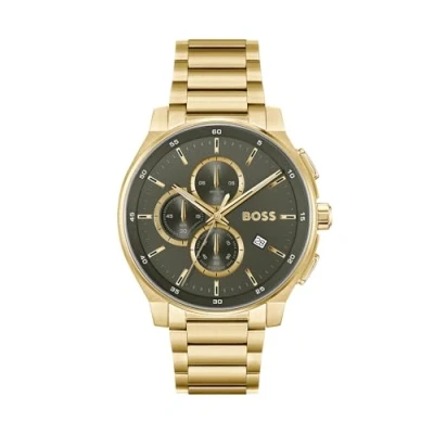 A chic wristwatch, a sporty watch or a trendy watch with an interchangeable strap? At Brandfield you have a wide choice of the finest watch brands for your unique look. Go for a watch that suits you and enjoy it for years! At Brandfield you will find the most beautiful hugo boss watches for the best price, such as this Hugo Boss BOSS Quartz Men's Watch HB1514190 for men. The watch is equipped with a quartz timepiece. This beautiful dial is green and is covered with high-quality mineral glass. The watch case is made of stainless steel and has a diameter of 44 mm. The colour of this watch strap gold and has a width of 22 mm. The watch strap is made of stainless steel. With this beautiful watch you will always know the right time every day!