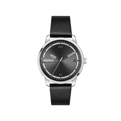 3-Hand Quartz Movement: The HUGO #STAMP watch is powered by a reliable three-hand quartz movement, ideal for precision and everyday wear 42mm Stainless Steel Case: This timepiece features a 42mm stainless steel case with an 8.5mm thickness, offering a sleek, minimalist profile Circular-Brushed Black Dial with Branded Details: A bold circular-brushed black dial includes a branded plate at 9 o’clock and molded accents, adding a signature HUGO touch to its modern design Black Leather Strap for Comfort: Completed with a smooth black leather strap, this #STAMP watch ensures a comfortable fit and effortlessly stylish look; available in various color combinations Water Resistance: 3ATM Faucet spray or rain won’t hurt them as long as the case, crown and crystal remain intact