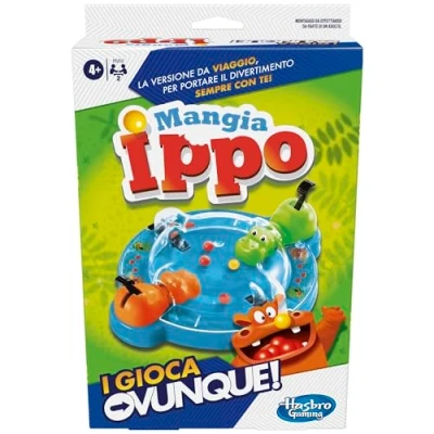 PORTABLE VERSION OF THE GAME IESSEN IPPO: The game Eat Ippo, I Play Everywhere is a compact version of the game Eat Ippo with hungry hippos (contains 2 hippos instead of 4) FUN TRAVEL GAME FOR KIDS & KIDS: easy to assemble, eat the ipo game, i play anywhere for 2 players is a fun game for car rides, planes, train, camping and vacation EASY TO STORE This complete game for 2 players provides a convenient built-in space so boys and girls can take it with you and organize game nights almost anywhere. The plastic cover holds the balls firmly so they do not roll IPPOPOTAMI CUTTING – Just like in the game of normal size, players try to be the first to make their hippo eat all the balls to win. Contains 2 hippos The regular size game (sold separately) has 4 GIFT FOR TRAVEL This fun game for boys and girls is a great gift for fans and fans of board games aged 4 and up. Alternatively, it is an ideal gift for the Christmas stocking, party or Easter, Manufacturer: Hasbro