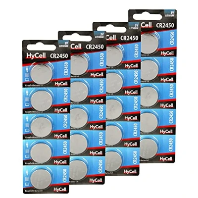 HyCell Button Cell Battery Pack of 20 Lithium Batteries CR2450 3 V Top Quality for Daily Use in Devices such as Remote Controls, Car Keys, Calculators, Scales, etc.