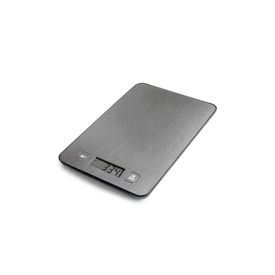 Digital kitchen scale with stainless steel platform, robust and easy to clean. Measures 20.5 x 14 cm Ideal for weighing solid or liquid ingredients with precision. Clear display with tare function and unit change. Graduation: 1g, 0.1oz. Holds up to 10 kg. Modern design with automatic shut-off Batteries not included. Includes user manual.