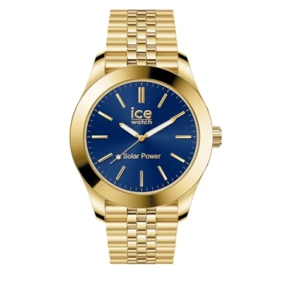Discover the ICE steel solar power - Gold blue watch, synonymous with luxury and ambition. This sumptuous model features a gold mesh case and bracelet, set off by a deep blue dial with gold detailing. This elegant and sophisticated watch adds a touch of luxury to every outfit. Solar-powered, it recharges in natural or artificial light, ensuring long autonomy. Medium (43mm) men's wristwatch with stainless steel case and metal strap Water resistant up to 10 ATM : immersion and watersport resistant (swimming), not suitable for diving. Shipped with instruction manual and presentation box. Collection ICE Steel solar