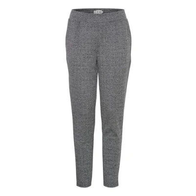 ICHI IHKATE Jacquard Women's Trousers Fabric Culotte with Zip Decorative Stitching Herringbone Pattern Piping Pockets Regular Fit, Black/White (203523), XL
