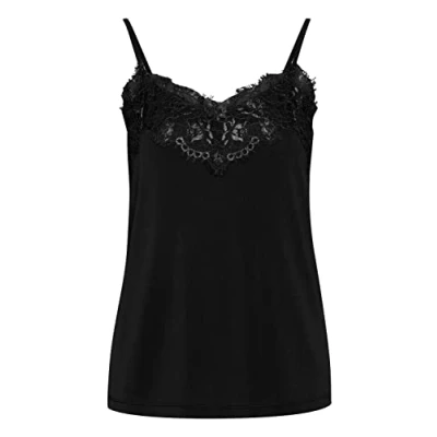 Details & highlights: loose strappy top with lace, light V-neck, adjustable spaghetti straps, lace at the top hem at the front. Fit: regular fit – our model is 1.78 m tall and wears size S (small). Do you usually wear a size S? Then this is also ideal for you 0 Super soft, supple women's T-shirt from (LABEL) made of comfortable, high-quality and slightly elastic (cotton/material quality). With this cool top, comfortable, stylish and casual looks are a breeze. Whether with a blouse or cardigan, in the office or in everyday life, (NAME) is an indispensable and easy to combine basic for your wardrobe.