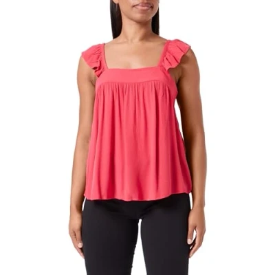 100% viscose (EcoVero), environmentally friendly, sustainable viscose fibre Very comfortable to wear, ecological Crepe fabric, lightweight, cooling Tank top with ruffled edge as sleeves