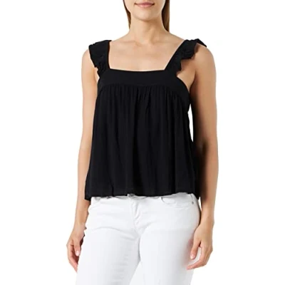 100% viscose (EcoVero), environmentally friendly, sustainable viscose fibre Very comfortable to wear, ecological Crepe fabric, lightweight, cooling Tank top with ruffled edge as sleeves