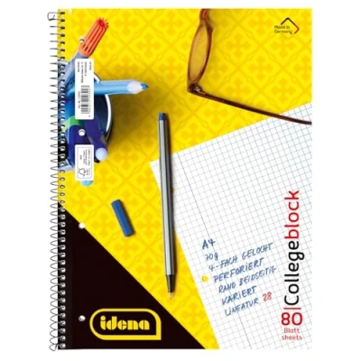 Idena 10392 College Notepad, DIN A4, 80 Sheets, 70 g/m², Squared, Perforated