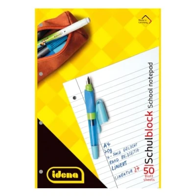 Idena 10393 School Notepad, DIN A4, 50 Sheets, 70 g/m², Ruled, Punched