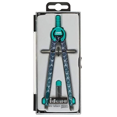 Includes refills in a tin The compass can vary its size very quickly, and the self-running spindle can be positioned to the desired width In one base of the compass there is a metal tip for attaching the device to the paper Pencil lead holder at the end of the second leg Compass and spare lead box in case for optimal protection during transport
