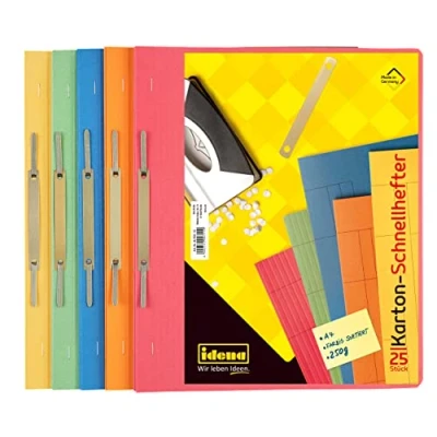 Suitable for DIN A4 format Cardboard material, ring diameter: 3 cm Weight: 250 g/m² Contents: 25 pieces Assorted Colours