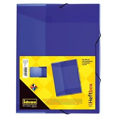 Suitable for DIN A4 With elastic closure Filling height: 3.5 cm Ideal for school and home office Colour: translucent blue