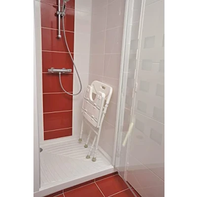 The folding shower chair allows you to relax during your shower, comfortably seated It is equipped with an anatomical seat with a cut-out at the front for easy intimate hygiene Its backrest is equipped with a practical carrying handle. It can be stored flat in seconds.