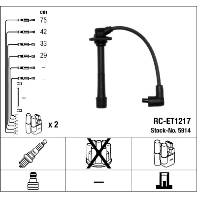 5914 / NGK, Ignition Cable Kit. Order now! Only 50.05 EUR. Not sure if this part is suitable for your vehicle? Ask for a free compatibility checking! Compatible with: TOYOTA [AVENSIS, AVENSIS Estate, AVENSIS Liftback].