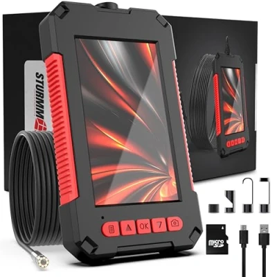 Single lens: Thanks to STURMM endoscopes, the inspection of hard-to-reach and hard-to-reach areas has been considerably easier. The ST-IC201 model is equipped with an intelligent 8 mm camera lens that allows you to get a clear view even in the tightest spaces. Ideal for complex maintenance or repair tasks. This model is particularly suitable for targeted inspection purposes due to its single lens with 1920 x 1080 pixels. IP67 waterproof and dustproof: All STURMM inspection cameras are dust and waterproof according to the IP67 certification class. This means that the cameras can withstand immersion in water to a depth of 1 meter. This makes our endoscopes particularly suitable for inspection of pipes, drains, engines or hard-to-reach underwater structures. [Extended Reach] The ST-IC201 model comes with a 5 metre long cable that allows you to inspect hard-to-reach areas in the distance. All our camera cables are built to last and use high quality materials. The camera cables are robust yet flexible due to their copper core, which guarantees you a user-friendly experience. [Photo and video memory] With STURMM ST-IC201 endoscope, you can check your inspection task at any time, thanks to the ability to take photos and videos. The monitor has a medium 4.3 inch LCD screen for clear image reproduction. To record visual material, an SD card is required, which is included free of charge. USB rechargeable: The model ST-IC201 has a durable 2600 mAh lithium battery. A USB charging cable is included with the product, so you can charge it anywhere, anytime. The battery level is always displayed on the LCD screen, so you never run out of power. [Multiple languages] Our endoscopes are made for the EU market, so the software of this model contains 11 languages that can be manually set in the menu, including German, Polish, French, Dutch and Spanish.