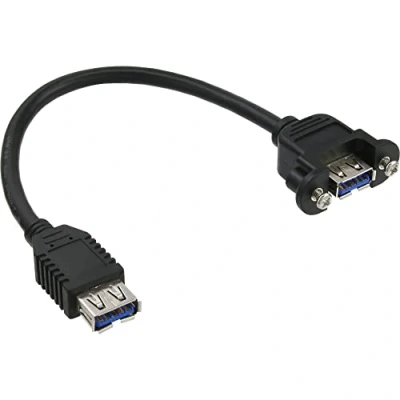 USB A female to USB A type socket Gold-plated contacts Opening for USB jack 1:1 assignment Colour: Black