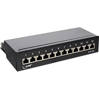 InLine 76809A Patch Panel Flat Cat.6A 12 Way Mounting on Top Hat Rail (TS35) Black RAL9005