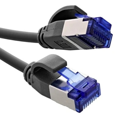 HIGHSPEED INTERNET CABLE: The cable supports Gigabit connections, i.e. the maximum speed of 1 GB/s of the Internet provider. LSZH – Low Smoke Zero Halogen: In case of fire, the cable does not emit halogen-containing vapours and is therefore safer than conventional halogen-containing cables and ideal for use in e.g. offices or data centers. Reliable and perfectly shielded: S/FTP (shielded foiled twisted pair) shielding at pair and cable level. TPE jacket and slim: the TPE jacket makes the cable extremely flexible. Due to this design, the cable is thinner than conventional patch cables. POWER OVER ETHERNET: The patch cable supports power transmission up to the PoE standard with 90 watts. 100% COPPER: High build quality with solid AWG 28 full copper strands. Robust connectors: the RJ45 connector as a supposed weak point is particularly robust with a moulded kink protection and a latch protection.