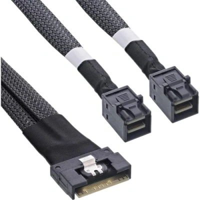 Reliable performance: Supports fast data transfer rates of up to 24Gb/s per channel with SAS technology – ideal for data-intensive applications. HIGH QUALITY CRAFTSMANSHIP - Durable connectors with locking clip and premium materials ensure durability and reliability. Compliant with SAS 4.0 SFF-8654 specifications. Compatibility: Connects SFF-8654-8i (host side) to two SFF-8643 (device side) - perfect for modern servers and storage systems. Easy integration: Plug and play functionality for quick and easy installation into existing systems. Space-saving design: slimline design for easy cable routing, even in confined cases.