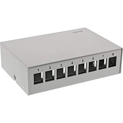 InLine® Surface Mounted Patch Panel Socket for 8X Keystone RJ45 Metal Light Grey RAL7035