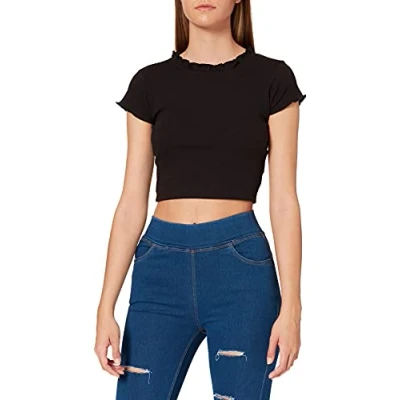 T-Shirt Croped Canalé Black 100% Cotton Machine washable Short sleeve